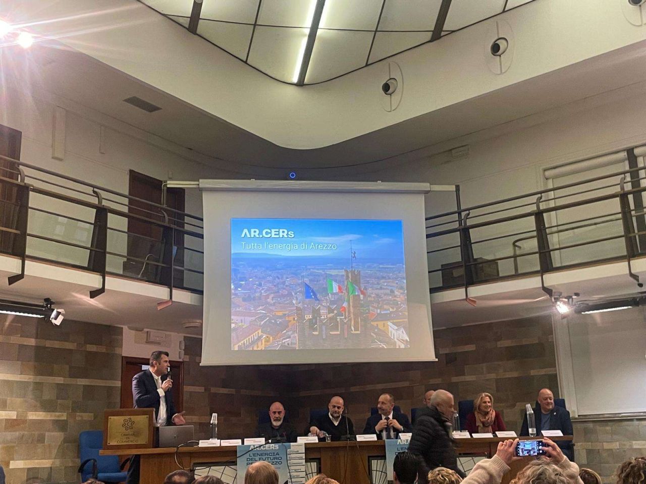 È stato presentato stamani ad Arezzo il progetto AR.CERs, acronimo che oltre ad evocare gli arceri, significa Arezzo Comunità Energetica Rinnovabile e Solidale. Una CER quindi, ma con caratteristiche molto particolari: l’unico caso in Italia a svilupparsi su ben 8 cabine primarie, e non su una sola, il cui funzionamento è stato ampiamente descritto nella intensa mattinata alla Borsa Valori della città, con presenti l’Assessore Sacchetti, Guasconi di Camera Commercio e Arrigoni Presidente di GSE.