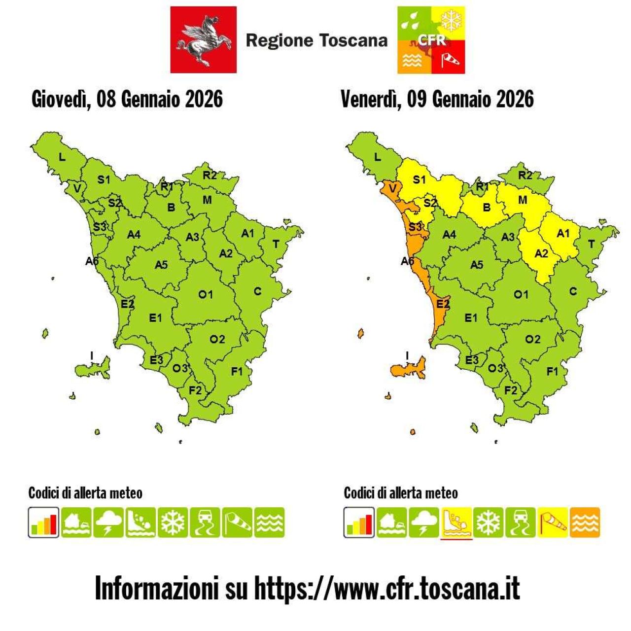 Al contempo, al Soup segnala inoltre allerta gialla per rischio idrogeologico nella giornata di domani su Toscana centro-settentrionale, e allerta gialla per rischio vento su costa centro-settentrionale e Arcipelago per tutta la giornata di domani.