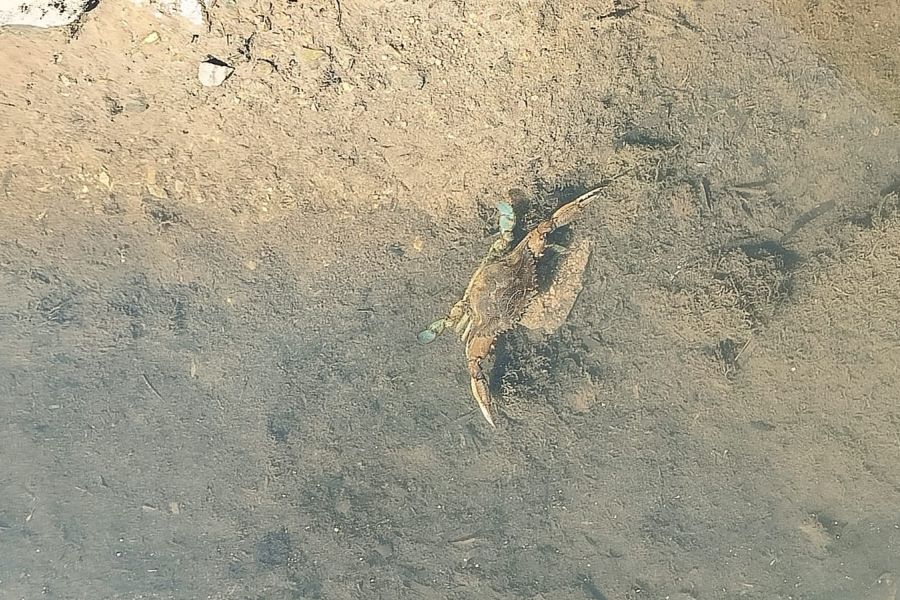 Sotto i ponticelli che attraversano i fossi di Mola, Roberto Barsaglini ha fotografato almeno tre esemplari di granchio blu invasivo che evidentemente si stanno spingendo all’interno della zona umida nel Parco Nazionale dell’Arcipelago Toscano, che rappresentano un pericolo per la fauna autoctona che rischiano di disturbare il già precario equilibrio dell’area.