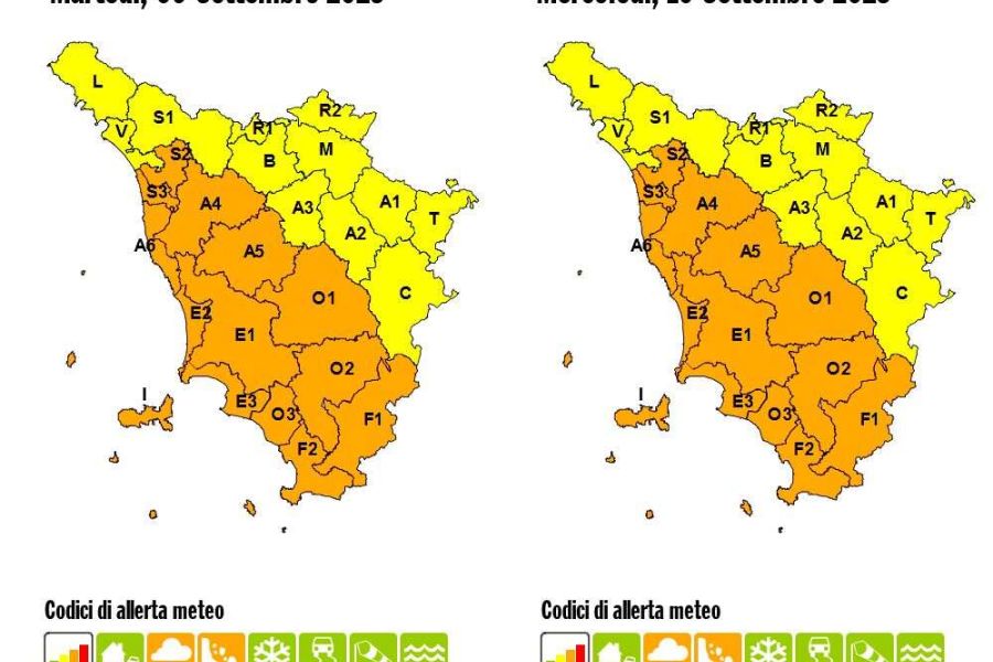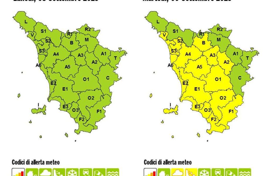 La Sala operativa unificata della Protezione civile toscana (Soup) ha appena diramato una nuova allerta: si tratta di un codice arancione su gran parte della Toscana per temporali e piogge diffuse da questo pomeriggio, martedì 9, alle 13 di domani, mercoledì, a causa di una perturbazione atlantica che sta transitando sulla nostra regione.