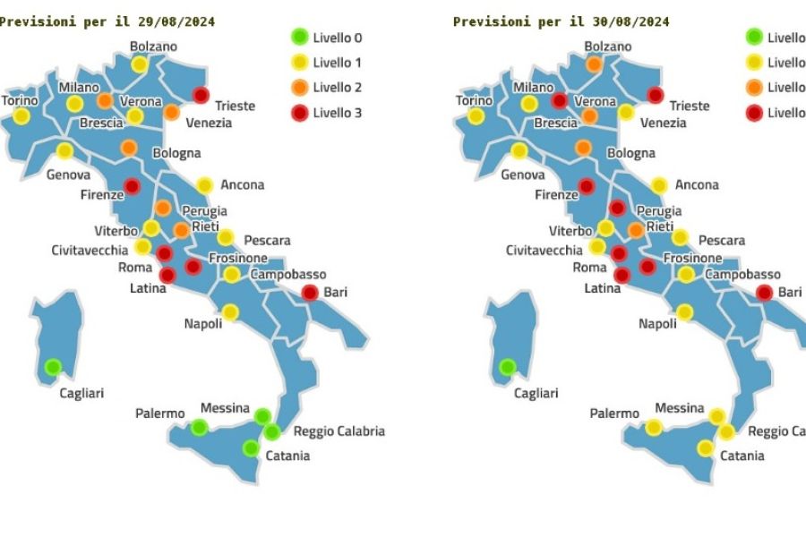A fine agosto sono 8 i capoluoghi italiani a rischio elevato, segnala il ministero della Salute